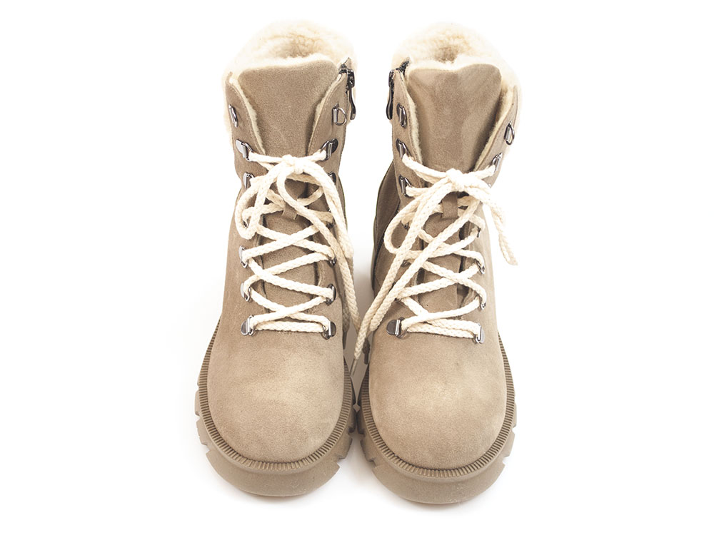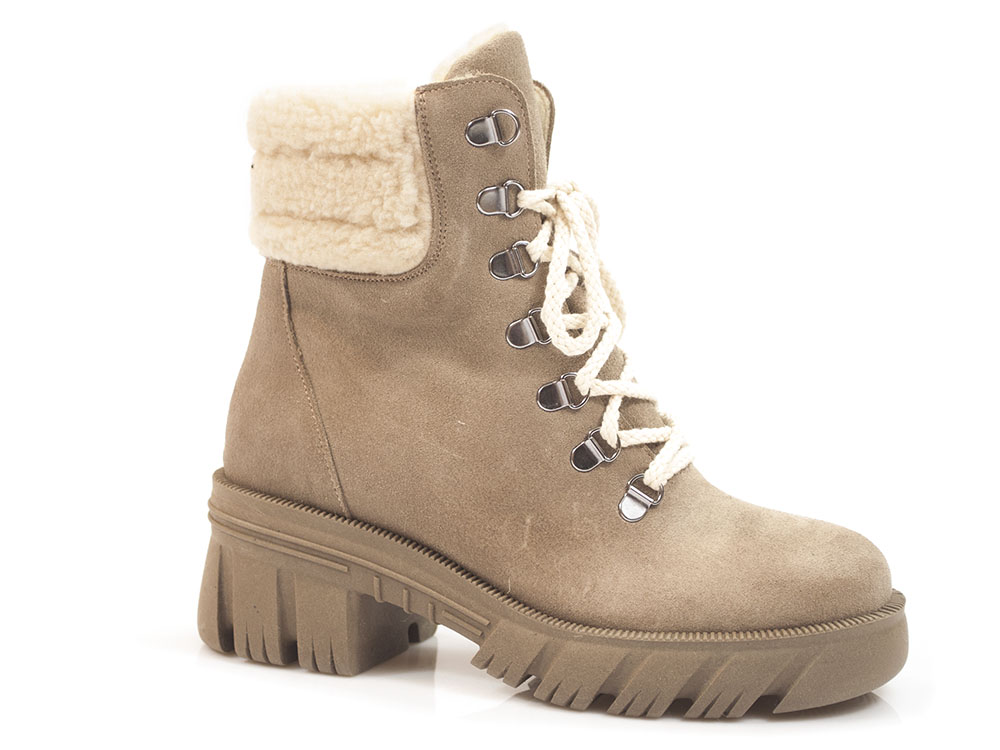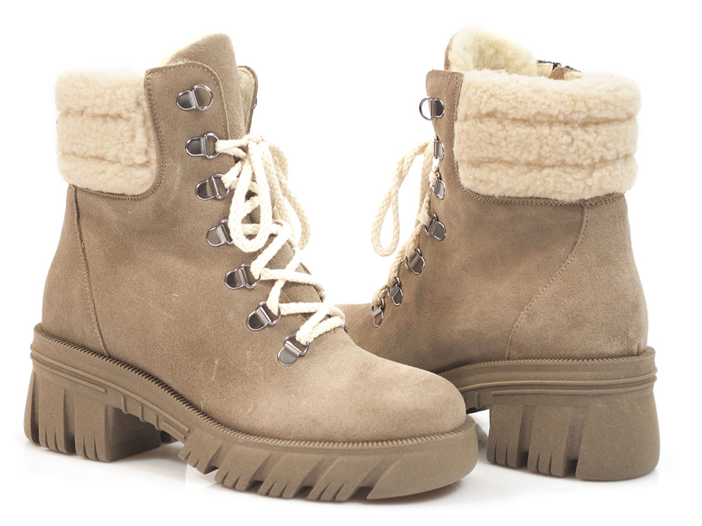 Beżowe botki trzewiki z wełnianym kożuszkiem Lemar 60382