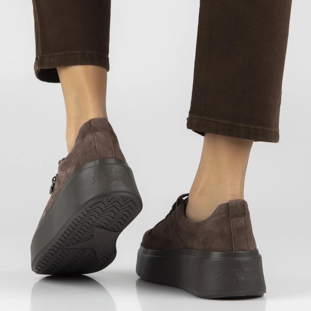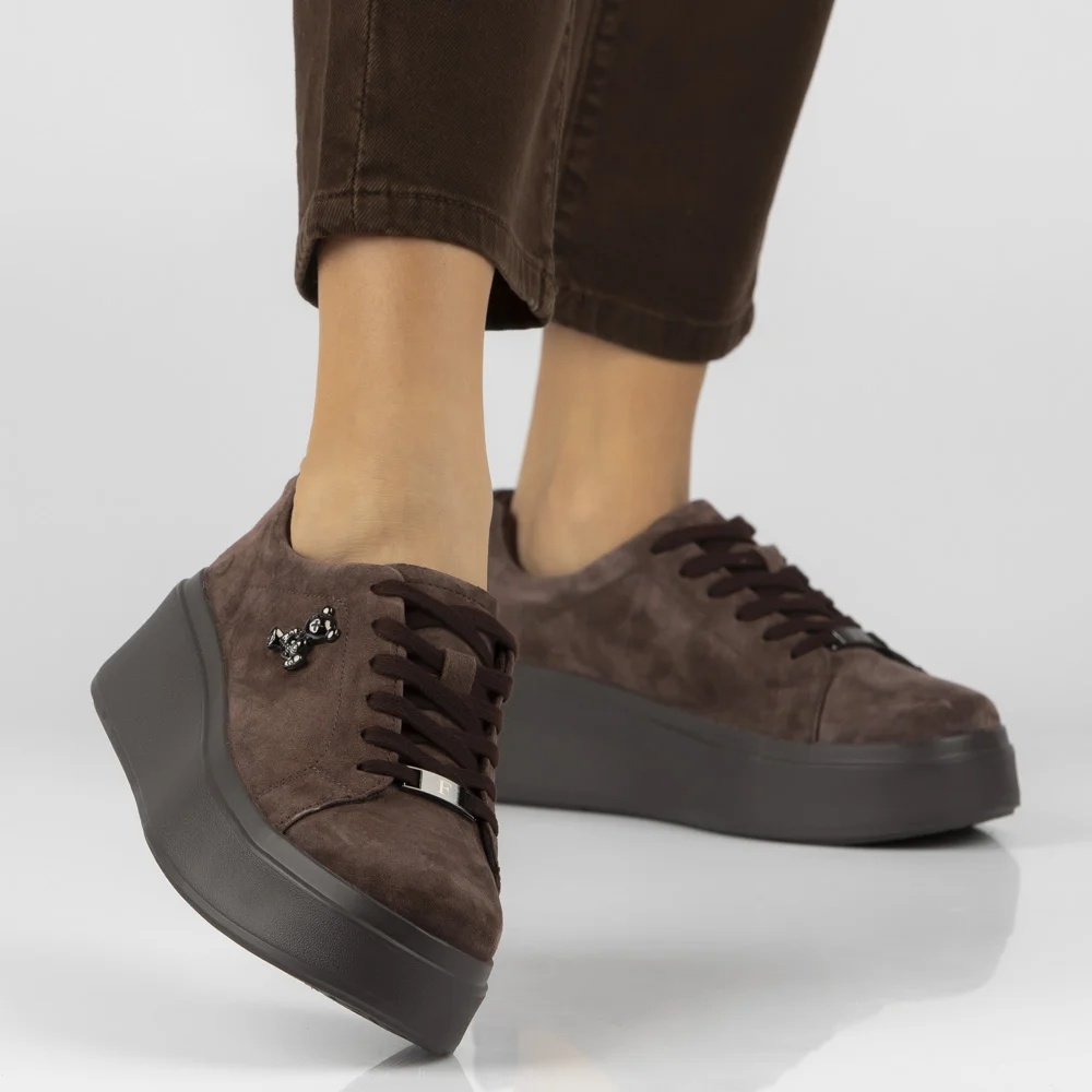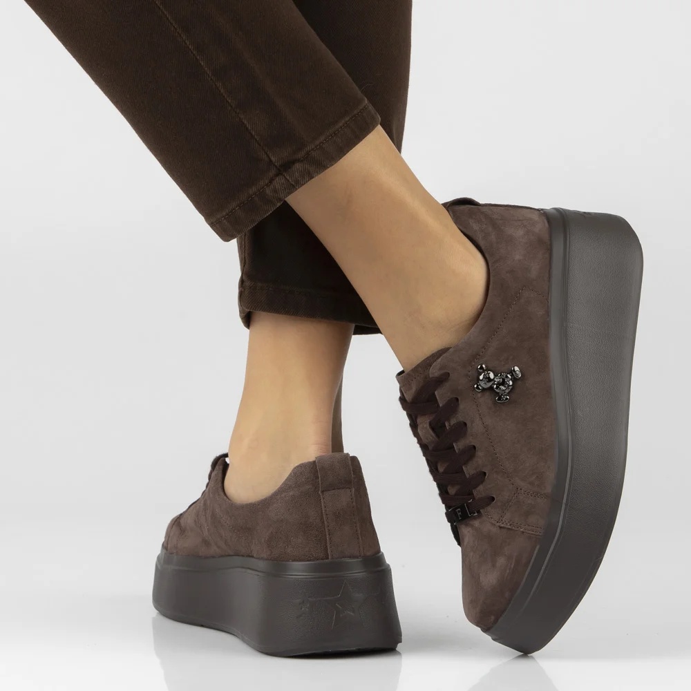 Brązowe skórzane sneakersy półbuty na platformie Filippo DP6246/26 z misiem