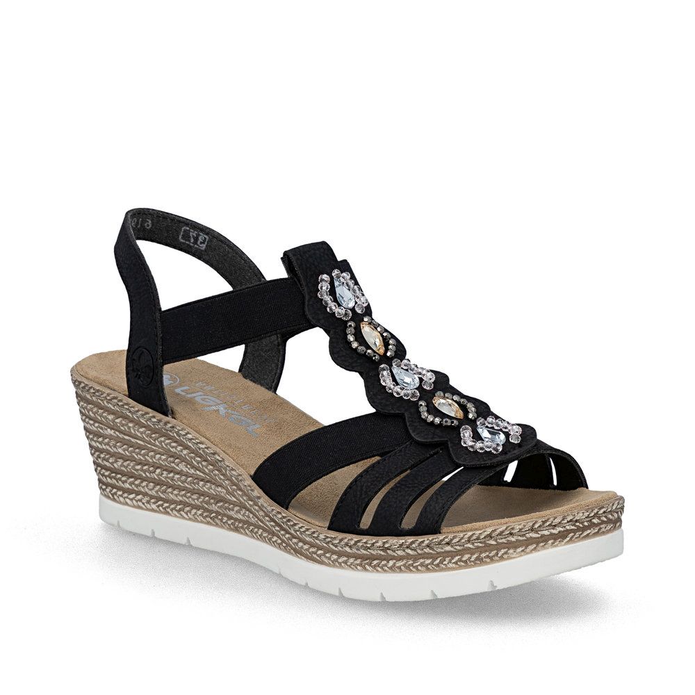 Czarne sandały na koturnie T-bary Rieker 619B2-00
