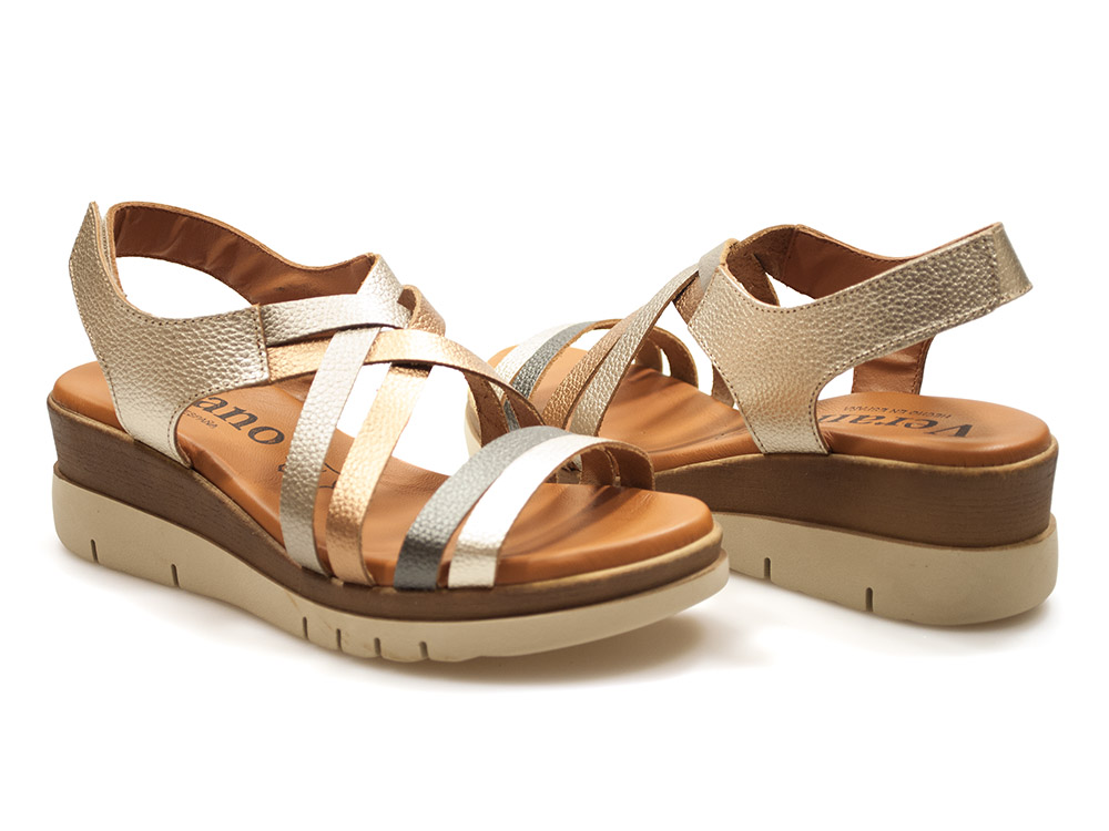 Komfortowe skórzane sandały damskie na koturnie Verano 4194 Galaxy