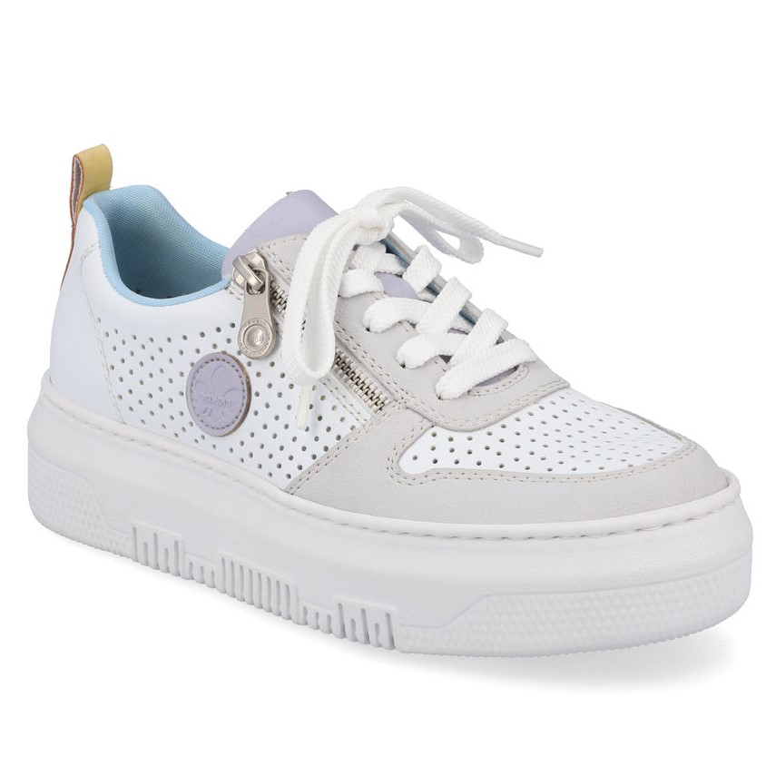 Białe ażurowe półbuty na platformie sneakersy Rieker M1905-80