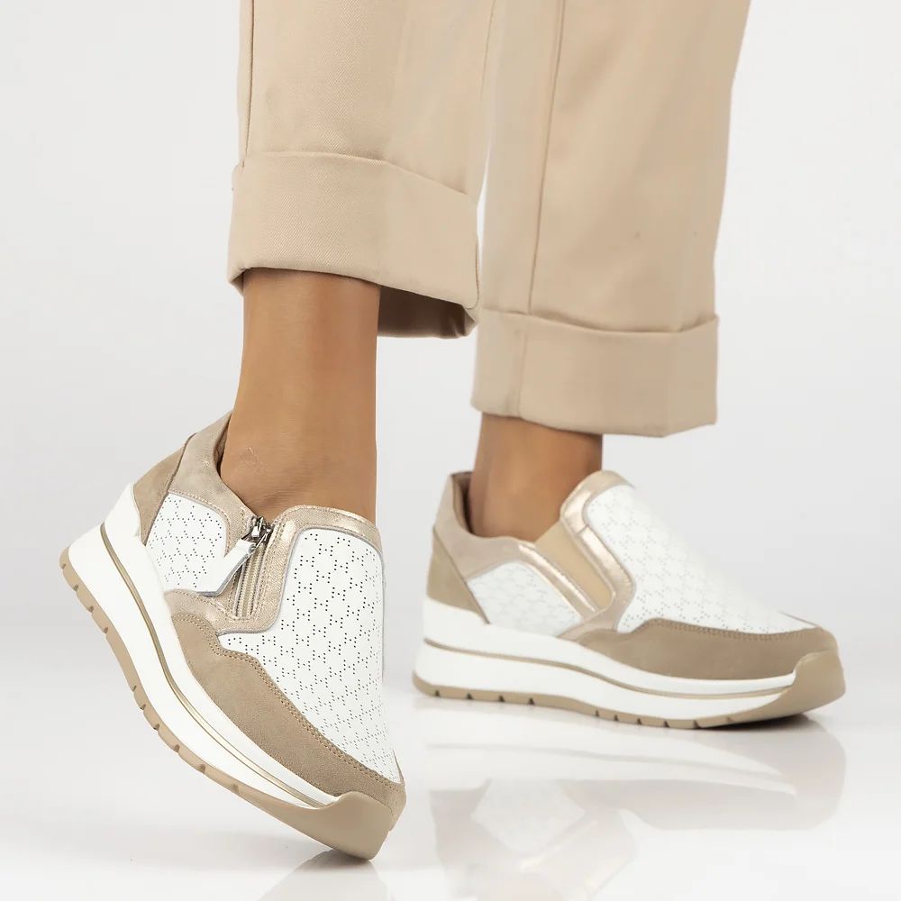Komfortowe buty damskie z naturalnej skóry na koturnie
