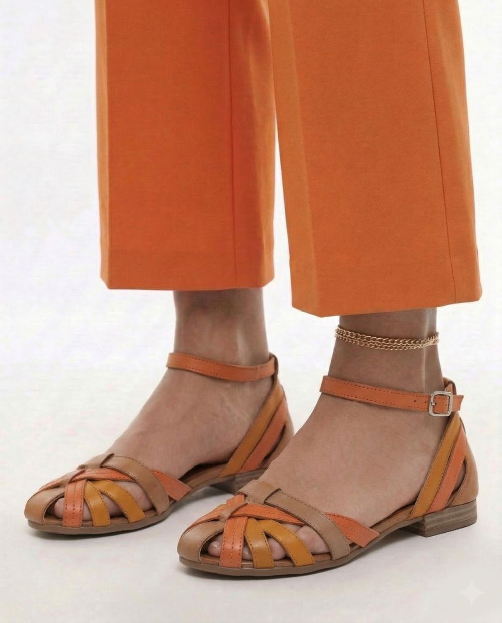 Komfortowe obuwie damskie na płaskim, letnie skórzane buty, rzymianki