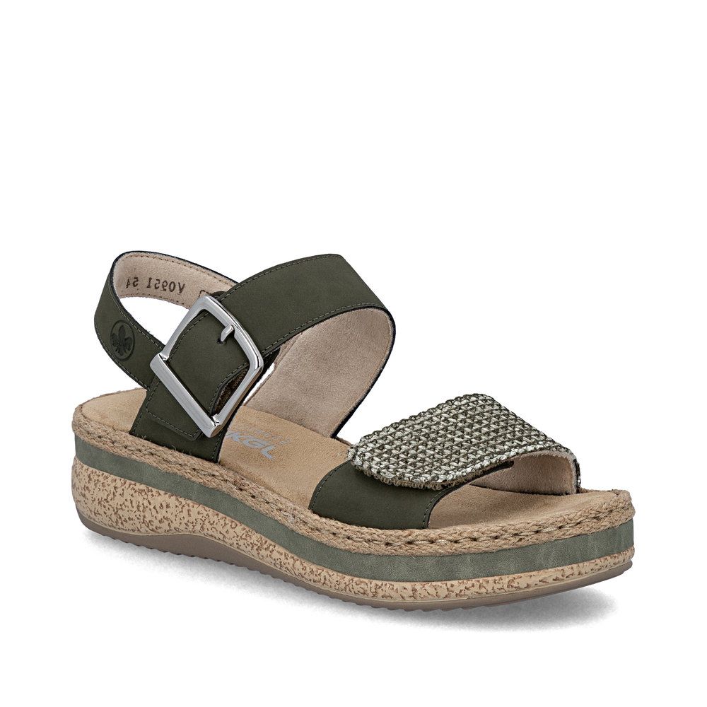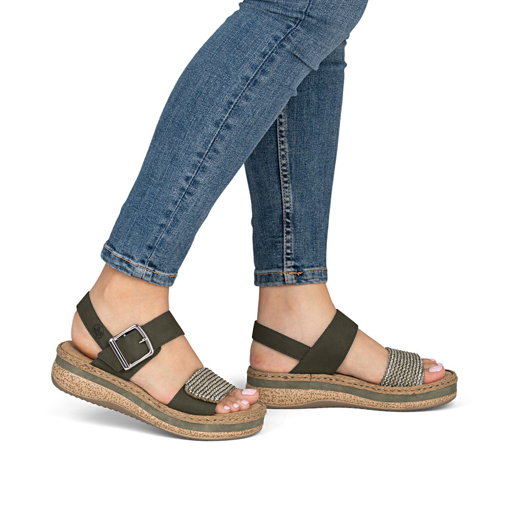 Zielone sandały damskie na platformie Rieker V0951-54