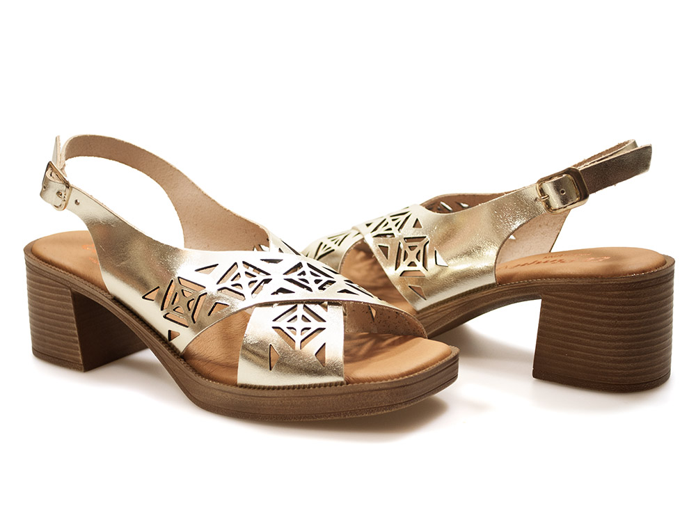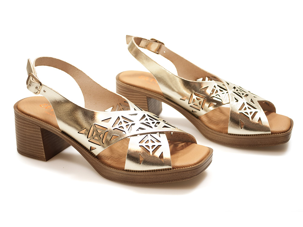 Złote sandały na obcasie El Pimpi 85403